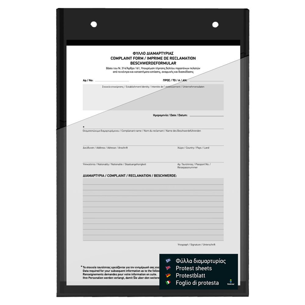 Κουτί παραπόνων για φύλλα διαμαρτυρίας με διαστάσεις 23x35cm από Plexiglass